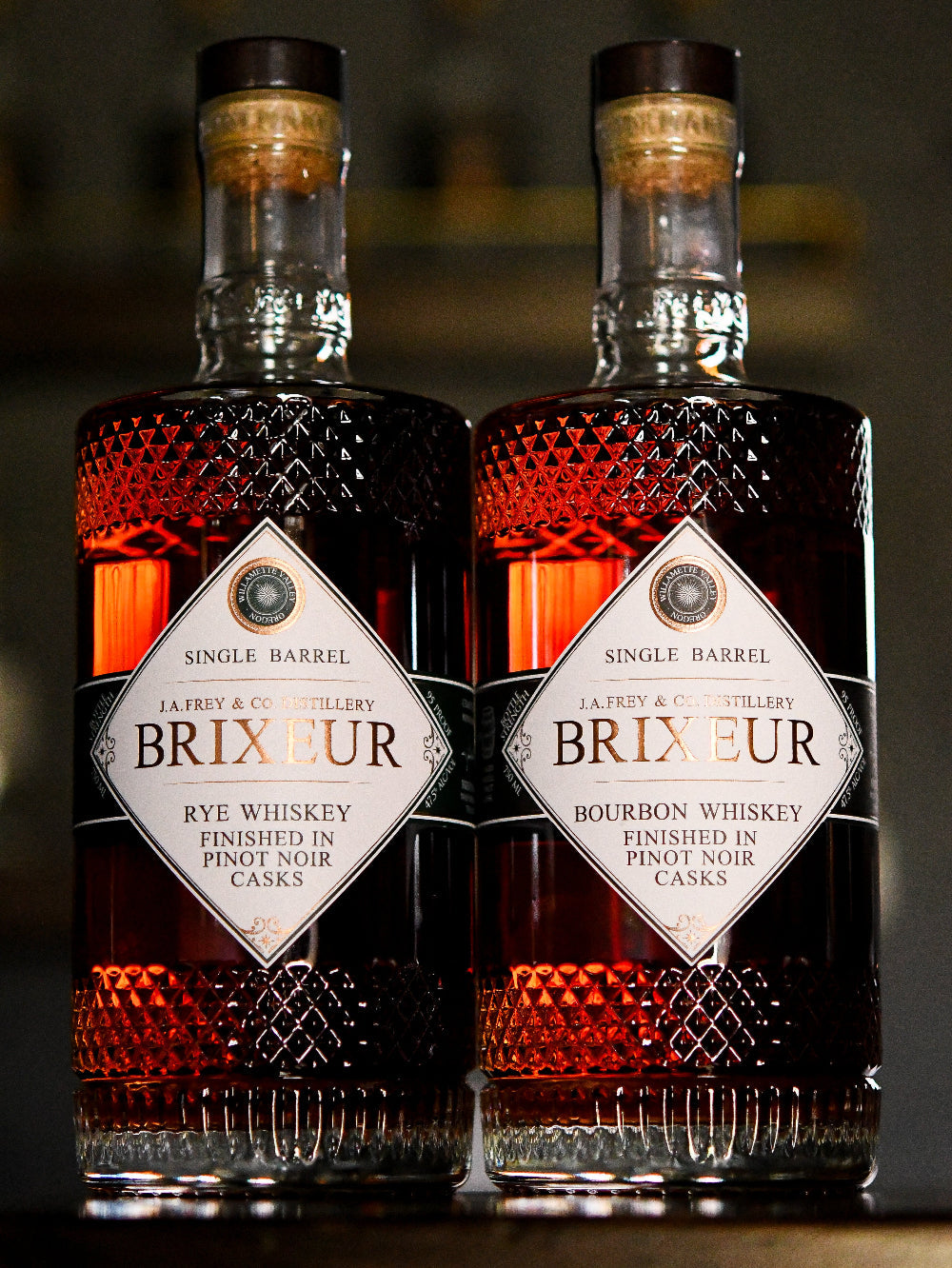Brixeur is located in the heart of the Willamette Valley where world-class wines are cultivated in an abundance of varietals. Our whiskey finishing program takes advantage of Trisaetum's plethora of unique barrels, including Lassa late-harvest Riesling casks and Pinot Noir barrels specified by clone and AVA.